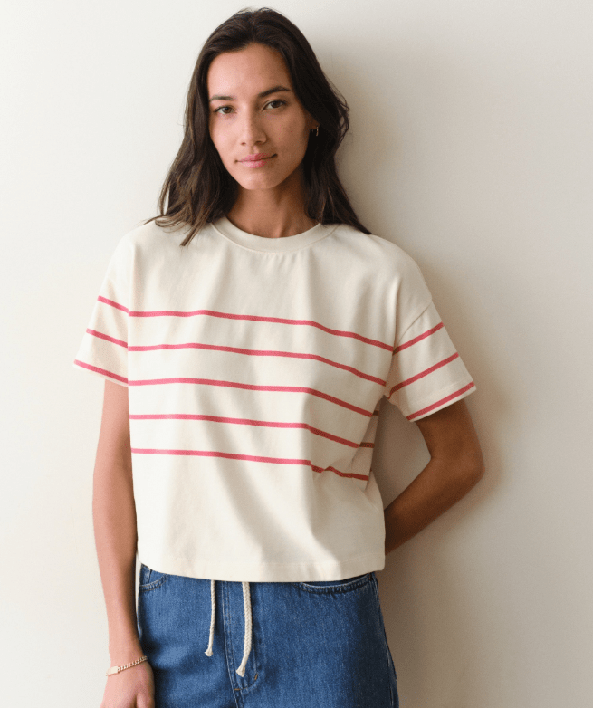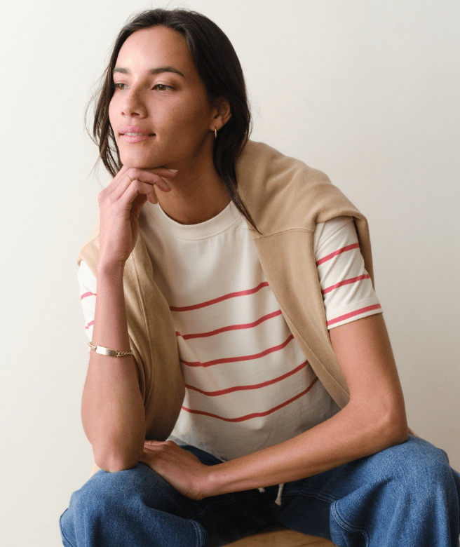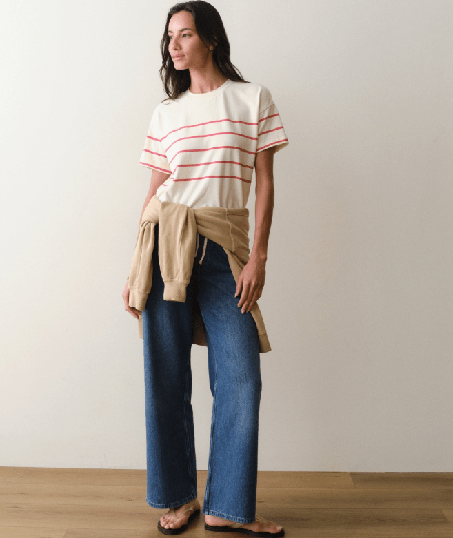 Marine Layer Luxe Sueded Crew Tee in Red/White Stripe