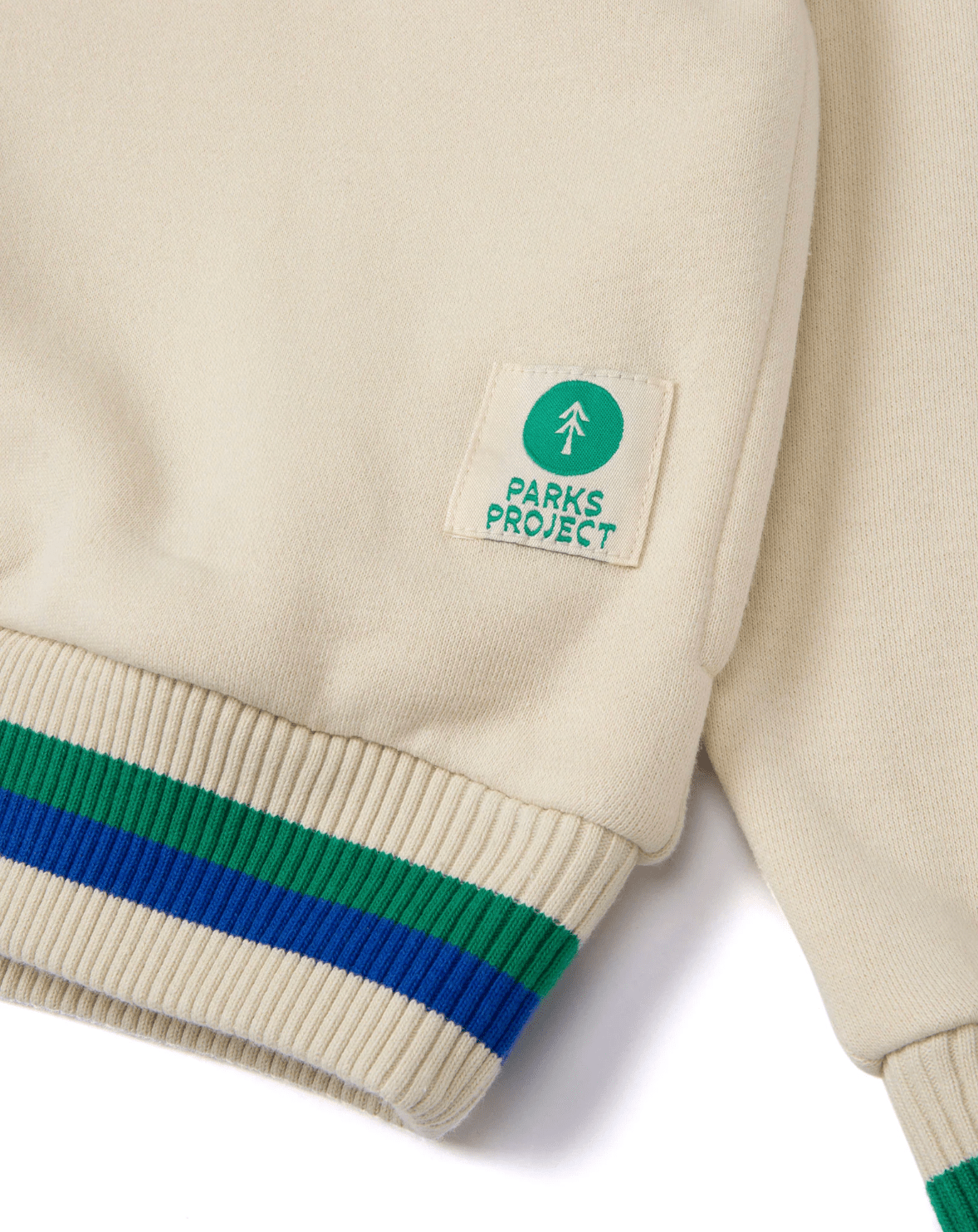 Parks Project's new quarter zip fleece is tailored for your adventures. Featuring a quarter zip with a string pull, ribbing on the sleeve cuff and bottom, and stylish jacquard taping across the front chest. With two convenient side pockets, it's your go-to for exploring nature’s beauty.