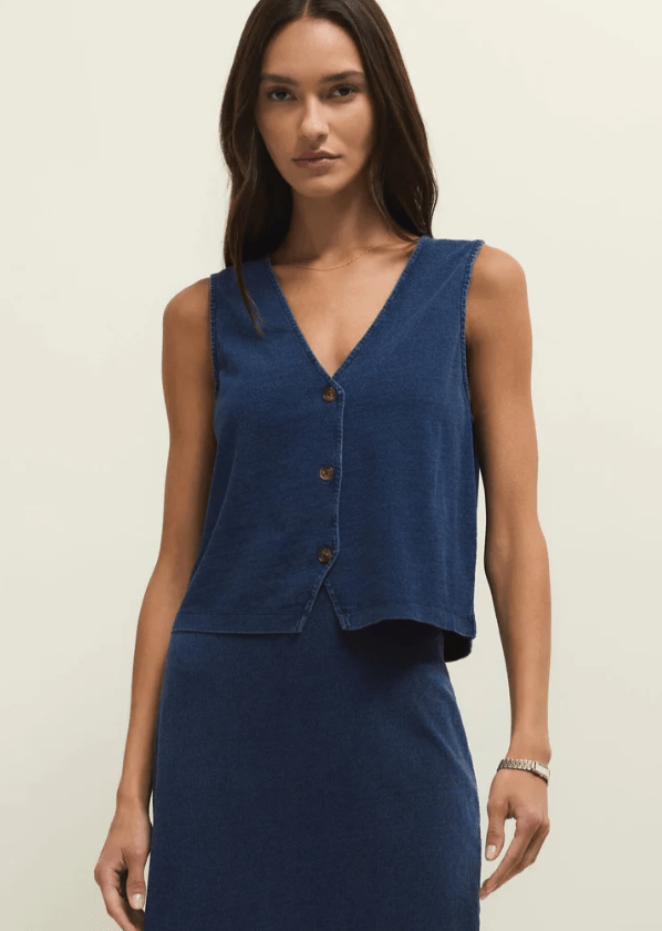 Z Supply Noelle Jersey Denim Top in Indigo
