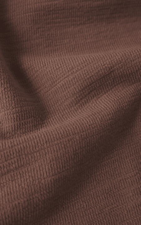 - Textured Knit: 60% Cotton, 38% Polyester, 2% Spandex