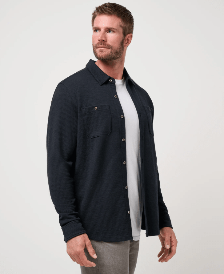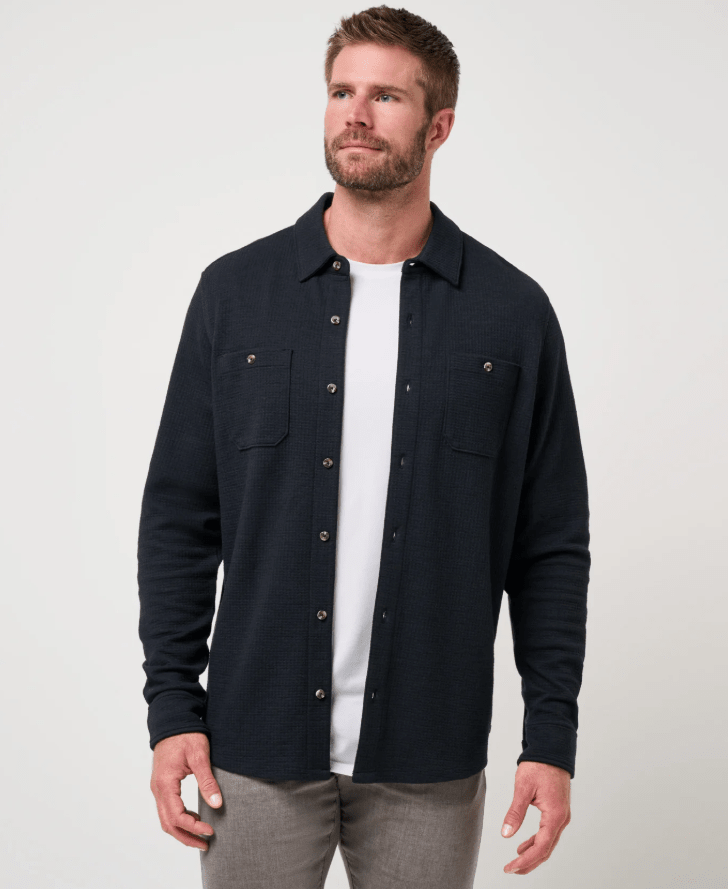 TravisMathew Cloud Waffle Shirt Jacket in Black