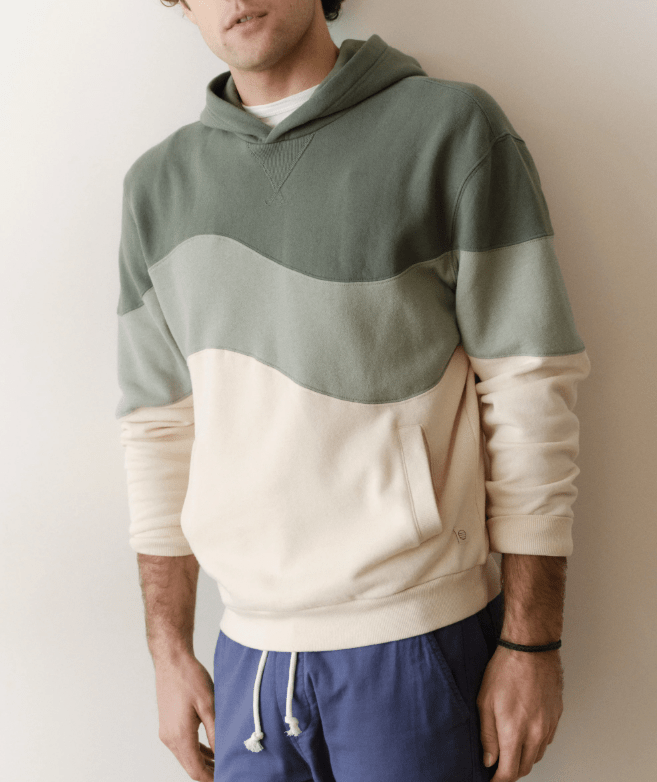 Marine Layer Relaxed Cloud 9 Fleece Hoodie in Green Colorblock