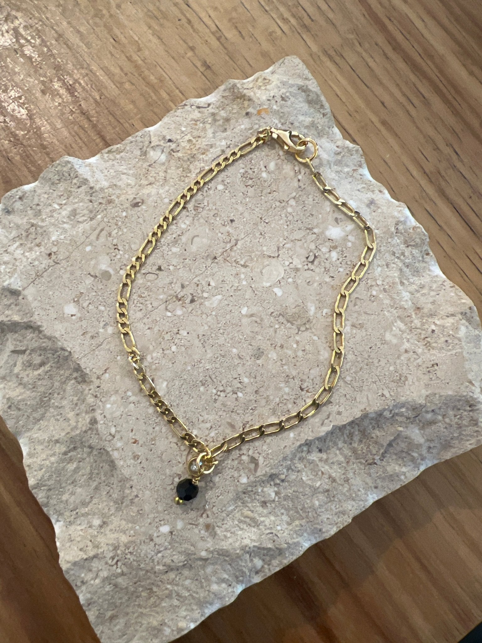 • Yellow gold figaro cable link combo chain + CZ & charm