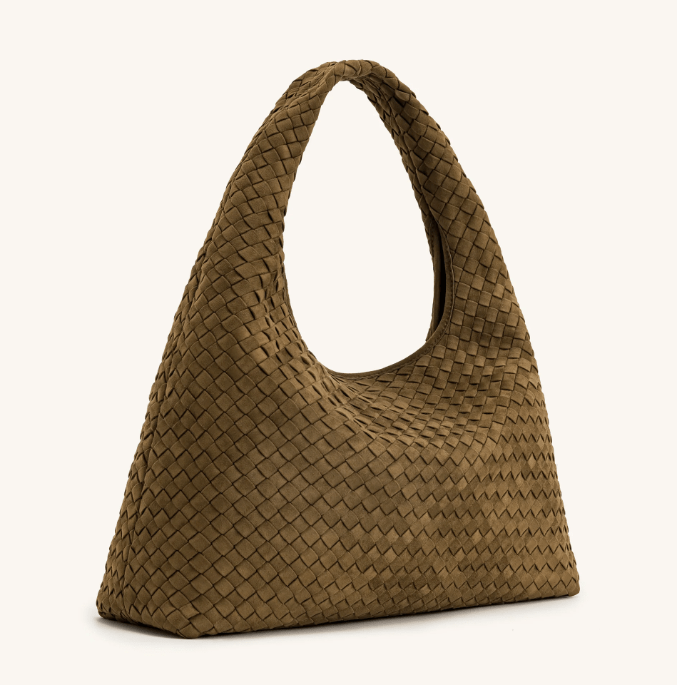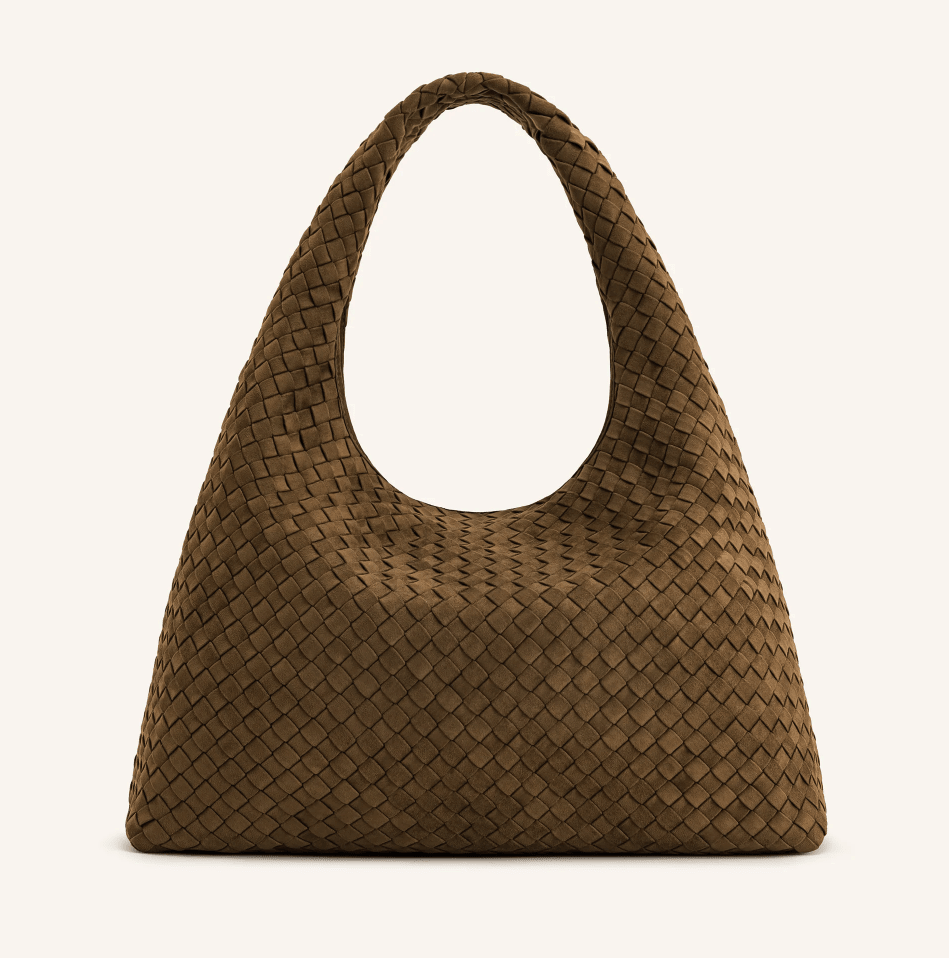 JW Pei Laura Faux Suede Woven Shoulder Bag in Olive Green
