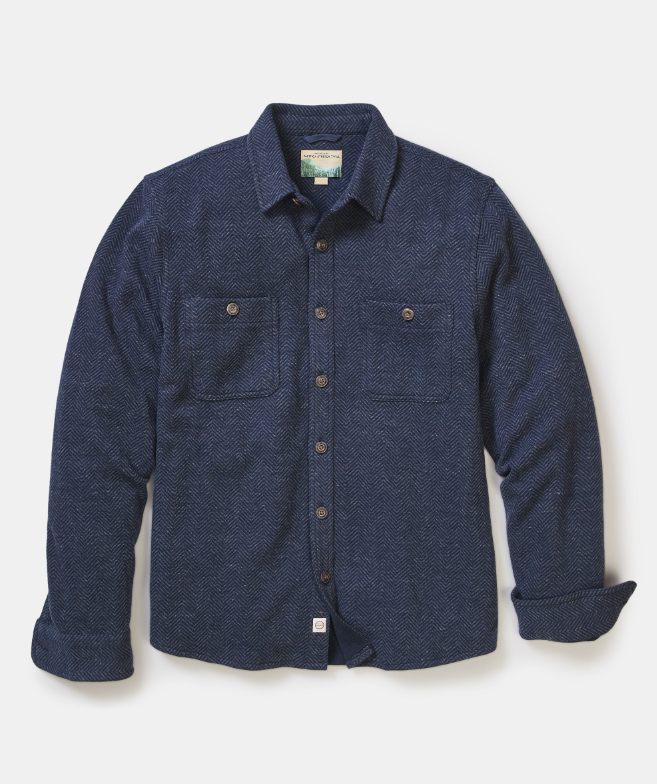 Marine Layer Pacifica Stretch Twill Overshirt in Navy Herringbone