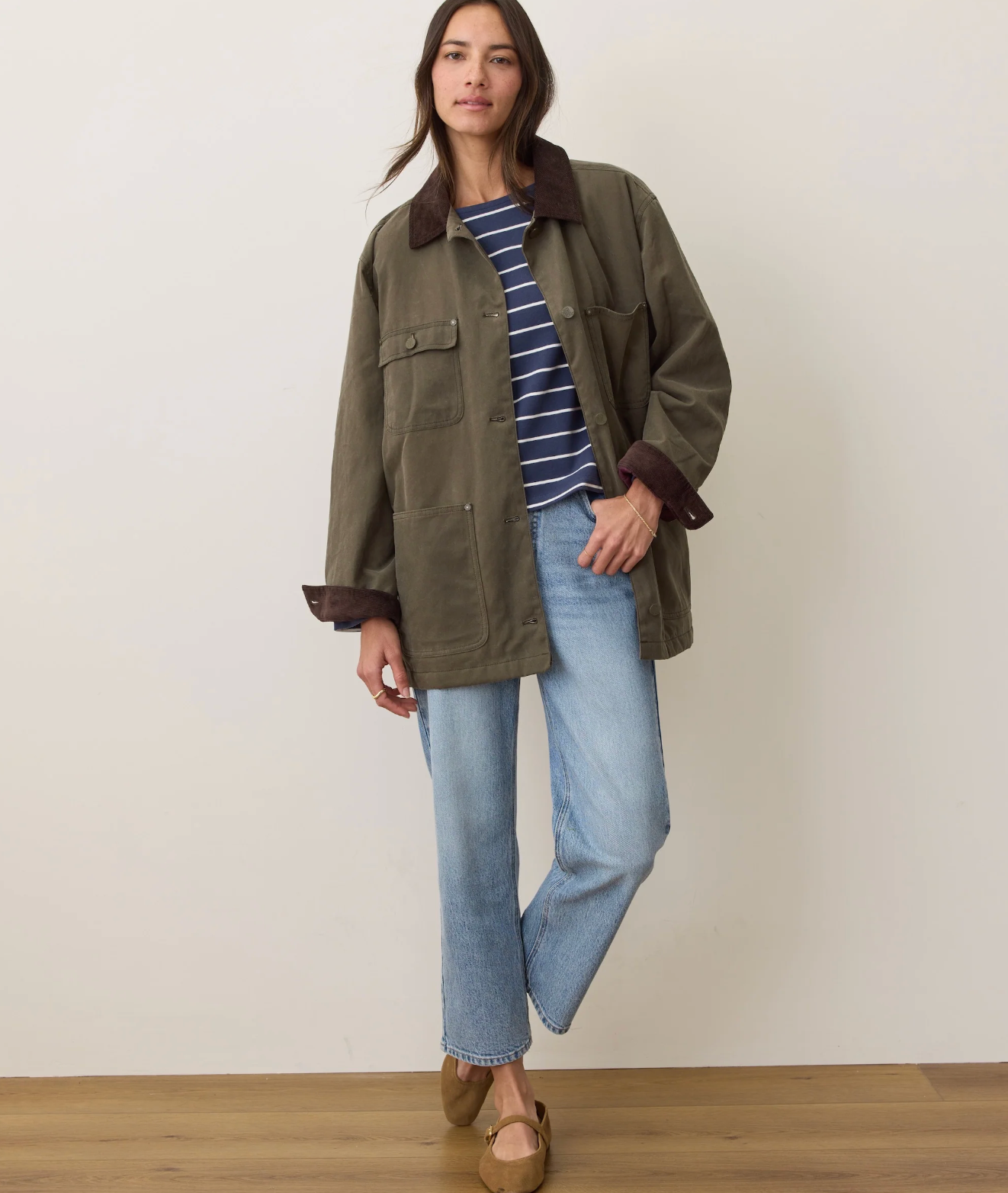Honestly, you could do some real barn work in this jacket. It has a super soft waxed finish and a flannel lining in the body that feels like you stole it from a guy named Chester who works with horses. It's even a little oversized.