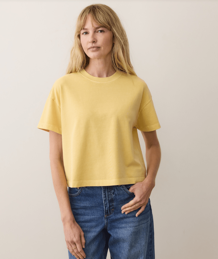 Marine Layer Cloud 9 Jersey Crew Tee in Sunflower