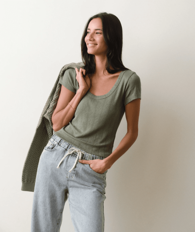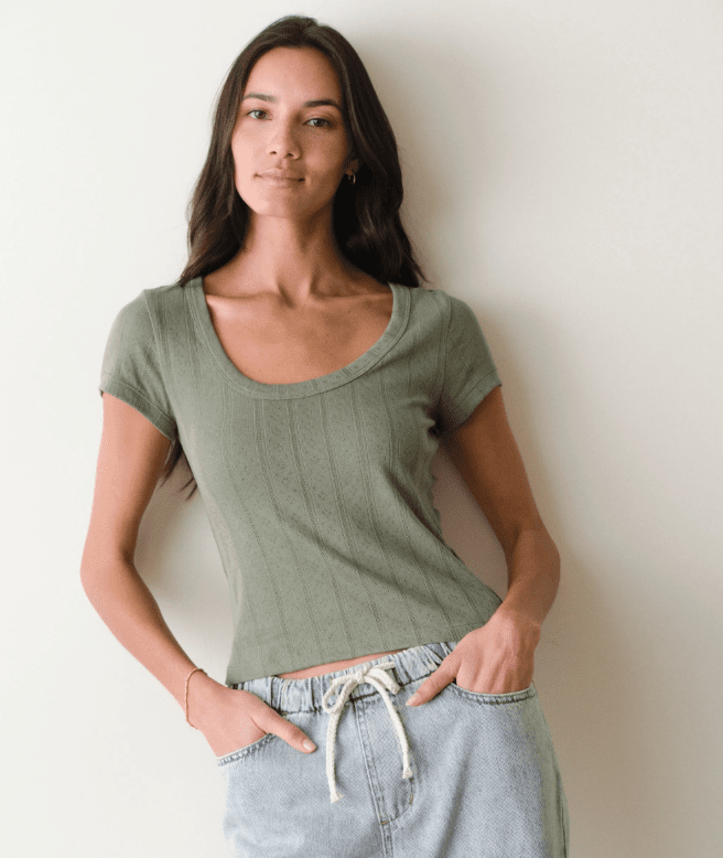 Marine Layer Lexi Pointelle Scoop Tee in Olive