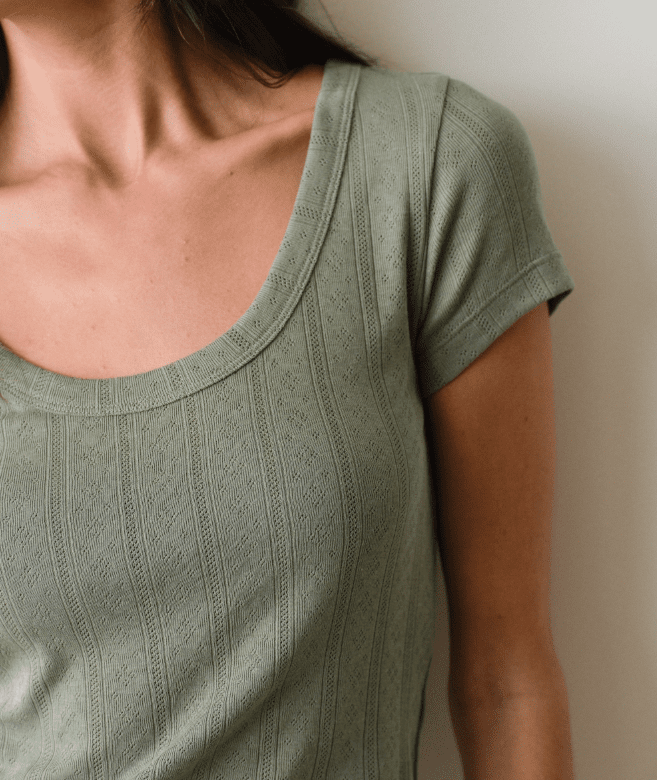 The absurdly soft and stretchy fabric from our #1 bestselling Lexi tees made even more feminine with a cute pointelle stitch. Looks amazing, and feels even better.