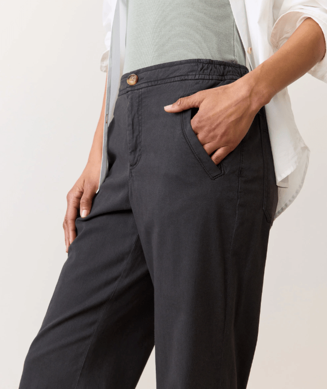Marine Layer's #1 bestselling guys Saturday Pant is now for the ladies. They've got the look of a fixed waist pant, with a touch of elastic at the back to keep things ultra comfortable. The fabric is incredibly soft with the perfect amount of drape. They're perfect for brunch, long weekends, or even the office (if you work at ML HQ).