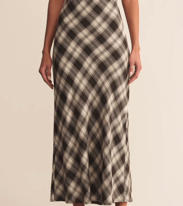 Designed in lightweight flannel, this plaid midi feels both classic and fresh. The high-rise waist and elastic pull-on band keep it easy, while the timeless pattern makes it a go-to layering piece for cooler months.